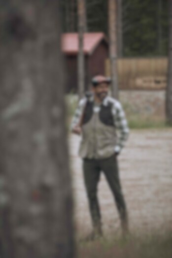 Dette er et par stilige og tidløse chinos med skrå lommer foran og stolpelommer bak. Buksen har løkker i linningen. Sømmene på buksen har tydelig stikninger. En morsom detalj er mønsteret i lommeposene som representerer stiliserte fasanfjær. Disse buksene har en smalere passform og er laget av et elastisk stoff som gir brukeren god komfort og bevegelighet.