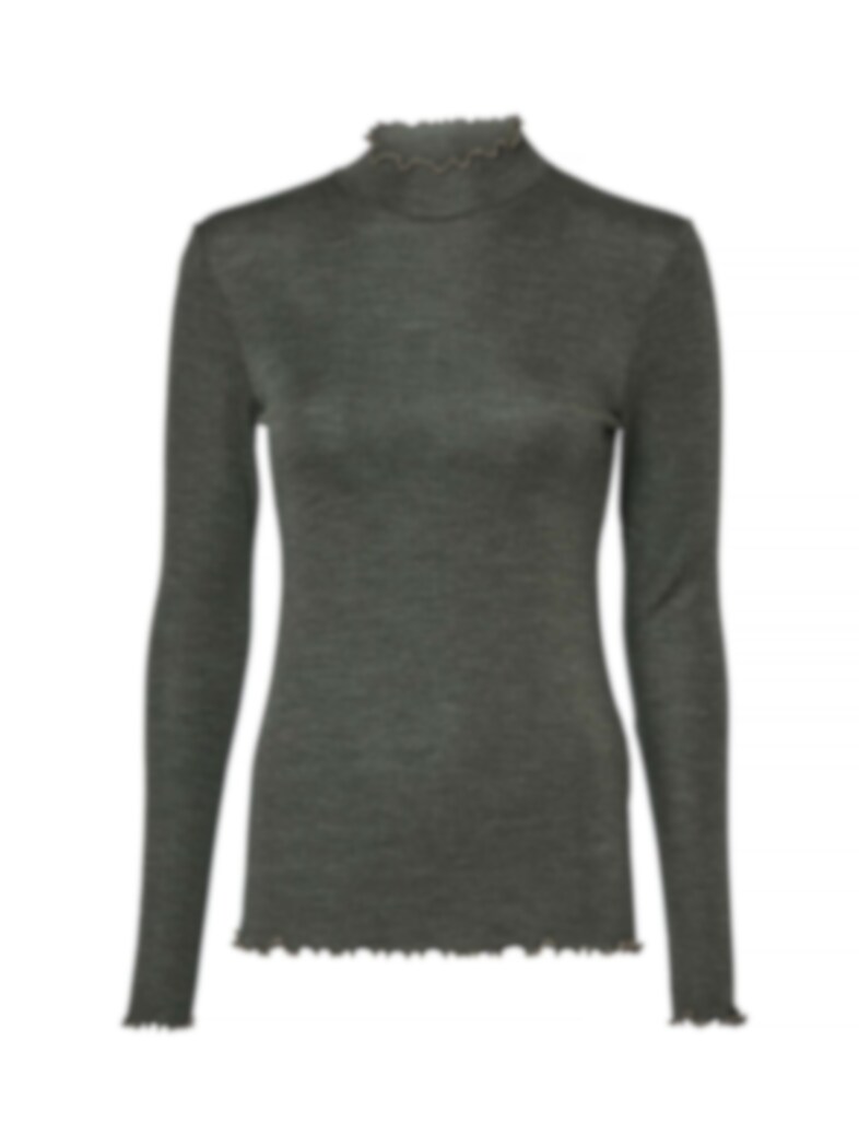 Article No. 1230009_6013Myk genser med høyere hals – Bølgete kant langs hals og ermer – Ekstra fin merinoull